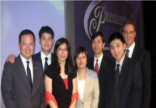 五位總裁獎得主與公司領導層合影